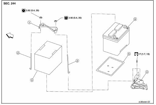 To prevent damage to the parts, disconnect the battery negative terminal first.