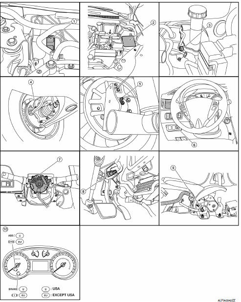 Detects the following information and transmits steering angle signal to ABS actuator and electric unit (control unit) via CAN communication.