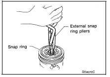 Check the appearance of the pulley assembly. If the contact surface of the pulley shows signs of excessive grooving, replace the clutch disc and pulley. The contact surfaces of the pulley assembly should be cleaned with a suitable solvent before installation.