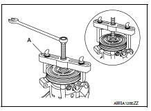 To prevent deformation of the pulley groove, the puller claws should be hooked under (not into) the pulley groove.