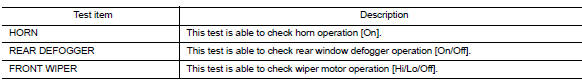 | Active Test | The IPDM E/R activates outputs to test components. |