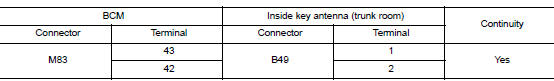 Is the inspection result normal? Yes >> replace inside key antenna (trunk room).