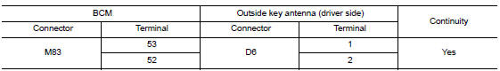 Is the inspection result normal? Yes >> replace outside key antenna (driver side).