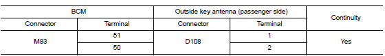 Is the inspection result normal? Yes >> replace outside key antenna (passenger side).