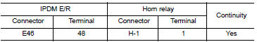 Check continuity between ipdm e/r harness connector and horn relay harness connector.