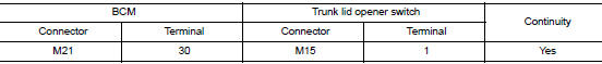 Is the inspection result normal? YES >> Trunk lid opener switch is OK.