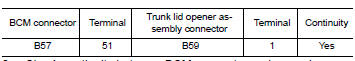 No >> repair or replace harness between bcm and trunk lid opener assembly.