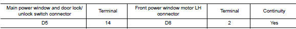 Is the inspection result normal? Yes >> replace front power window motor lh. Refer to gw-16, "removal and installation". After that, refer to pwc-29, "work procedure".