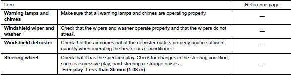 The maintenance items listed here should be checked on a regular basis, such as when performing periodic maintenance, cleaning the vehicle, etc.