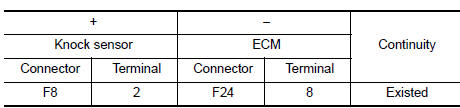 NO >> Replace knock sensor. Refer to EM-94, "Exploded View".