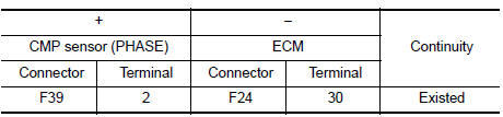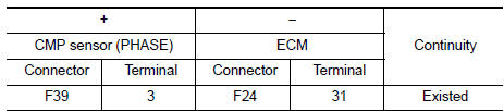 Check the resistance camshaft position sensor (PHASE) terminals as per the following.