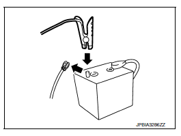 Before measuring the terminal voltage, confirm that the battery is fully charged. Refer to PG-4, "How to Handle Battery".