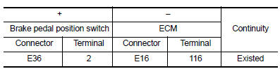 | B) | Brake pedal position switch signal is not sent to ECM for extremely long time while the vehicle is driving. | |||