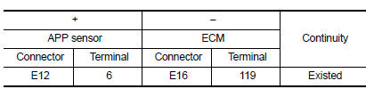 Check APP sensor. Refer to EC-436, "Component Inspection (APP Sensor)".