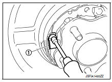 Remove disc rotor. Refer to RAX-7, "Removal and Installation - Disc brake".