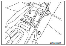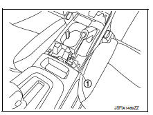 Remove center console cup holder finisher. Refer to IP-17, "Exploded View".