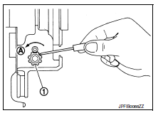 Remove the adjusting hole plug from the disc rotor. Turn the adjuster (1) in the direction (A) as shown using suitable tool until the disc rotor is locked.