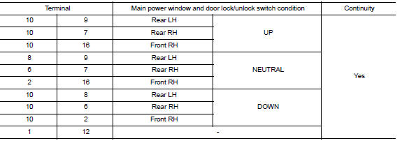 3. Check harness continuity (power window and door lock/unlock switch rh)