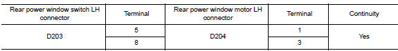 Check rear power window motor lh operation with main power window and door lock/unlock switch or rear power window switch lh.
