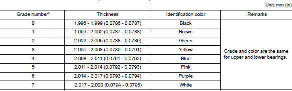 MAIN BEARING GRADE TABLE (ALL JOURNALS)