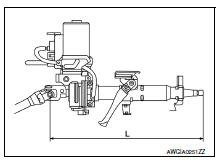 Measure the length (L) as shown if vehicle has been involved in a minor collision. Replace steering column assembly if outside the specifications.