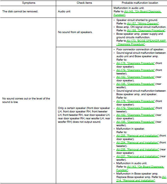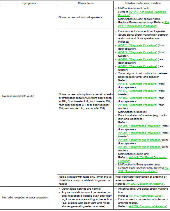 The vehicle itself can be a source of noise if noise prevention parts or electrical equipment is malfunctioning.
