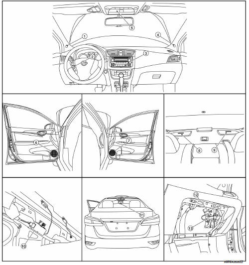 When the audio system is on, am/fm signals received by the window antenna are amplified by the antenna amp. And sent to the audio unit. The audio unit then sends audio signals to the front door speakers, front tweeters and rear speakers.
