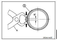 Install boot clamp (large diameter) securely to boot groove, and crimp it so as to have clearance (B) of 3 mm (0.12 in) or less as shown.