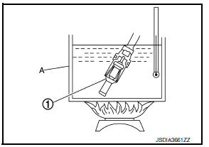 | Heater thermostat assembly | CVT oil warmer | Frontward | (A): 27 mm (1.06 in) (Hose end reaches the 2-stage bulge.) |
